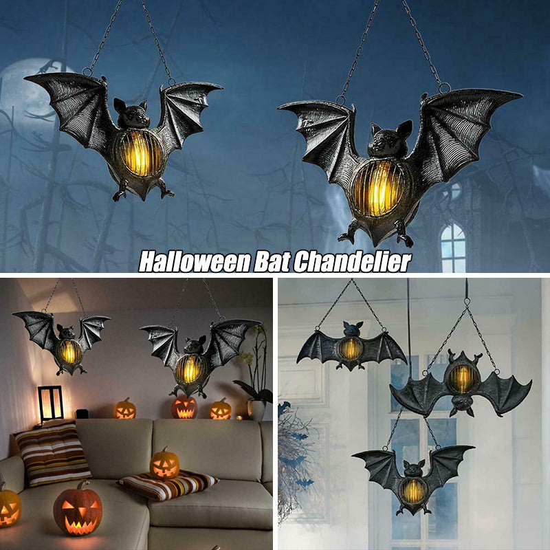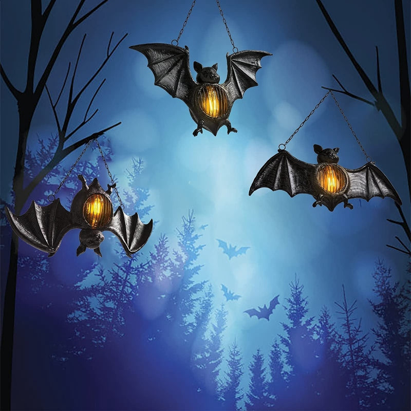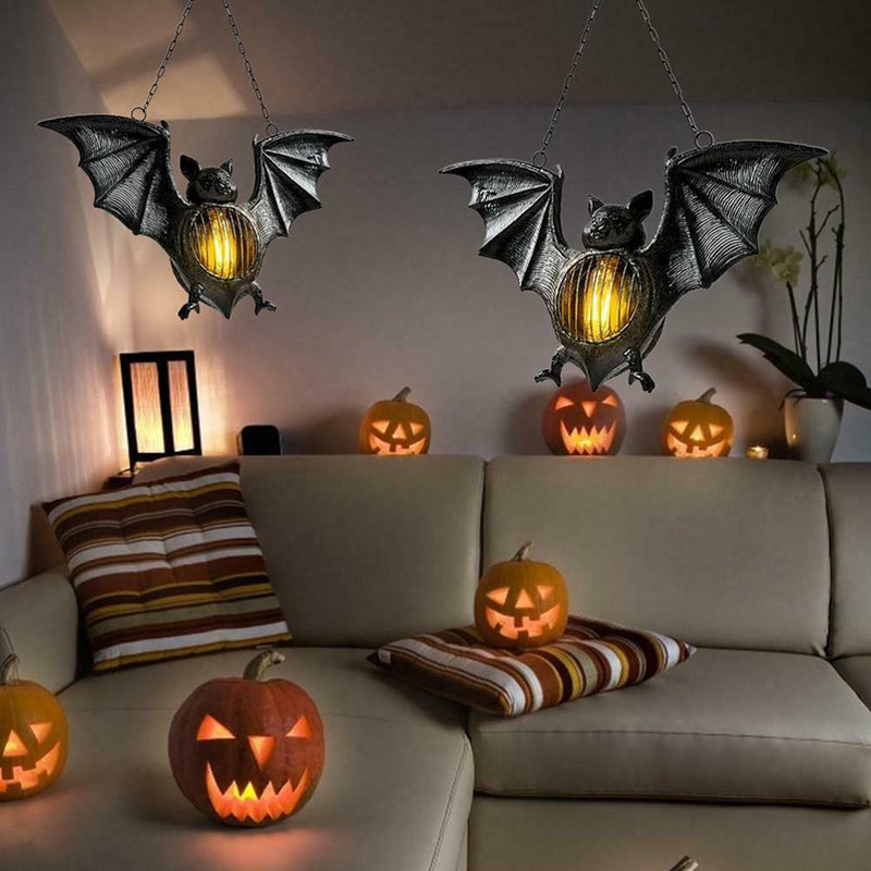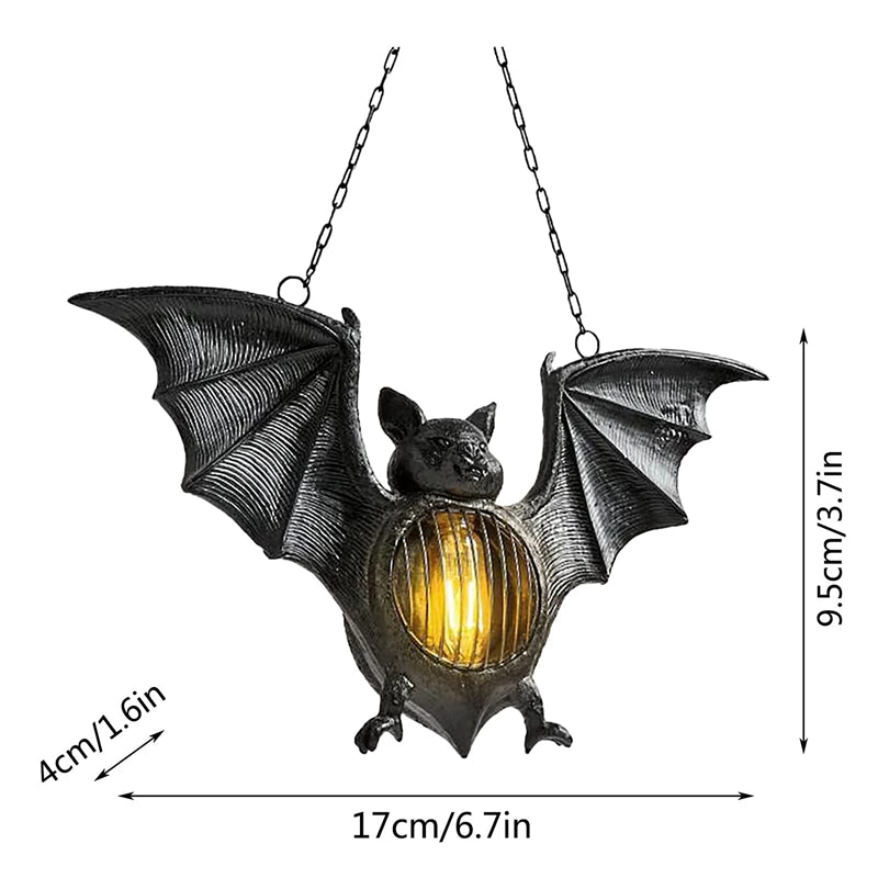 【Unnique Design】Resin retro style flameless pendant bat lantern. When the night falls, the LED light on the bat's belly lights up, creating a terrifying atmosphere. It can be used to decorate courtyards and verandas, and outdoor party decorations. (including battery).