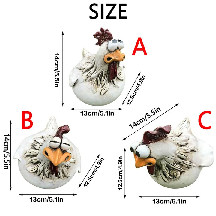 🐥 Funny Design: These curious resin chickens always like to look around. Big eyes are always full of curiosity. All chicken sizes are suitable for all places as decoration statues, our chicken yard art outdoor statue decor is perfect and unique.