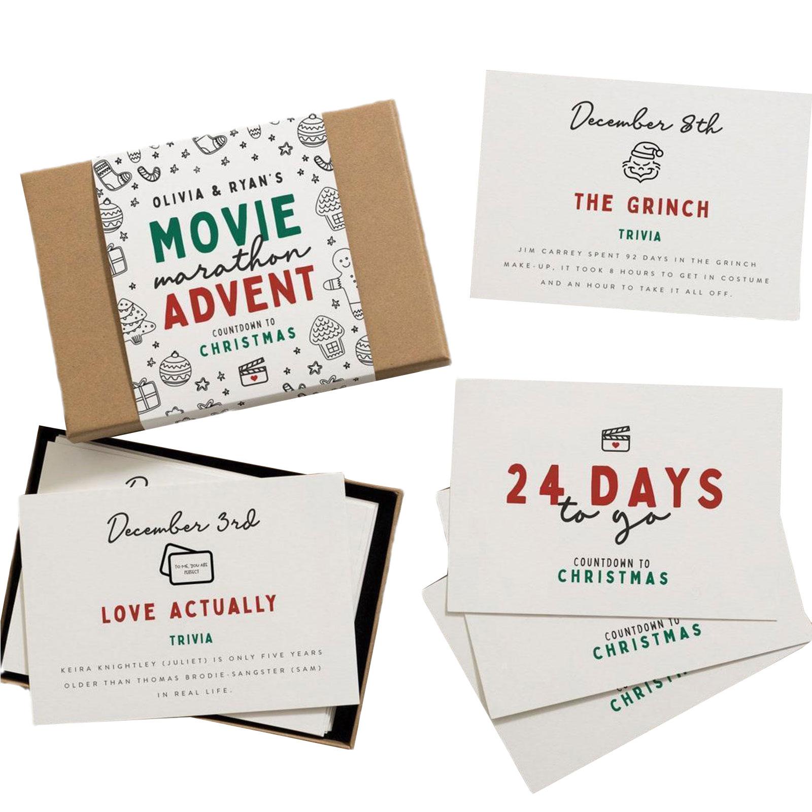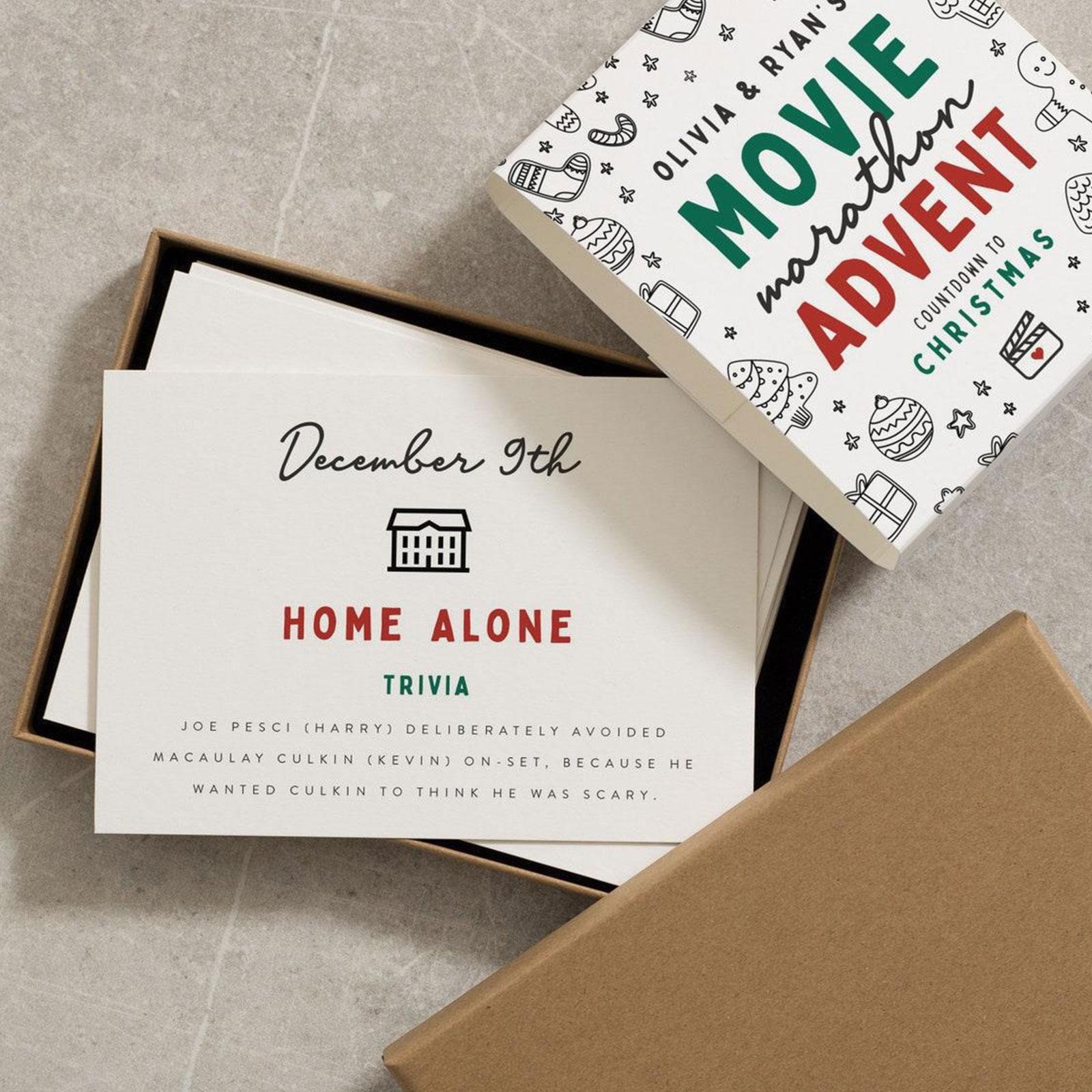 Each box of our Deluxe Advent Calendar contains 24 cards with Christmas movie names and some fun trivia! A lovely gift for him or her, the family or for any movie fan!