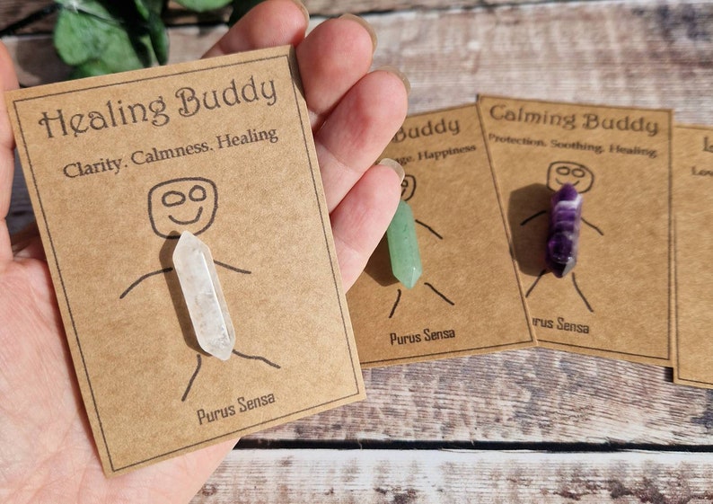 Keep this with you in your pocket, on your desk, on your night table, in your car, or in your purse. Or give it as a gift to someone you care about, to let them know you are always thinking about them!The gift is designed so that the crystal can be removed safely from the card to keep in a pocket etc