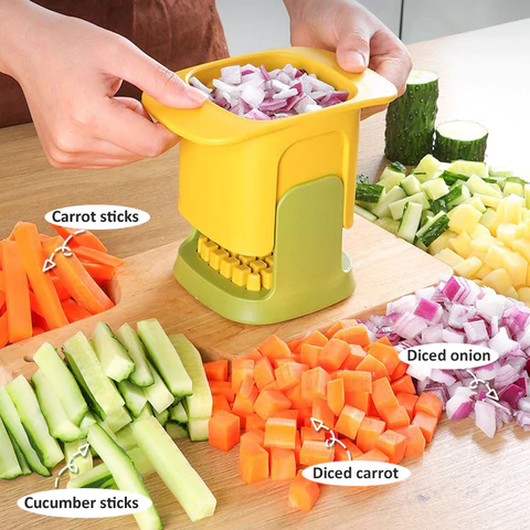 - Quickly Prepare Vegetables No need to cut frequently with a knife, just gently press the chopper, and vegetables can be diced or sliced. The diced vegetables are neat and square, which is more beautiful than hand-cutting.