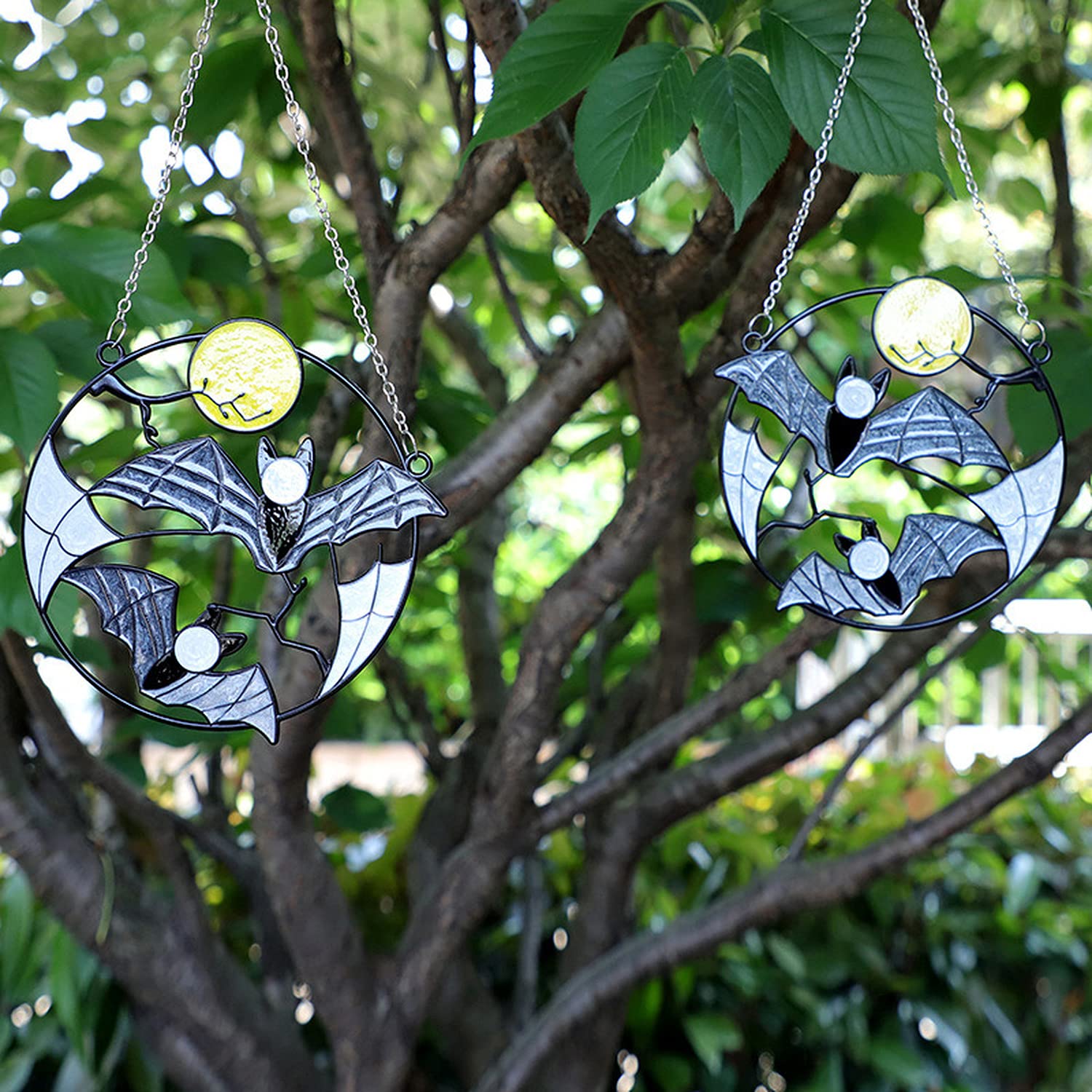 【Halloween Design】This Halloween bat pendant ornament is designed with Halloween elements in a gothic style. The hollow bat and moon pattern, unique and horrifying, is a must-have decoration to add to the horror atmosphere of Halloween.