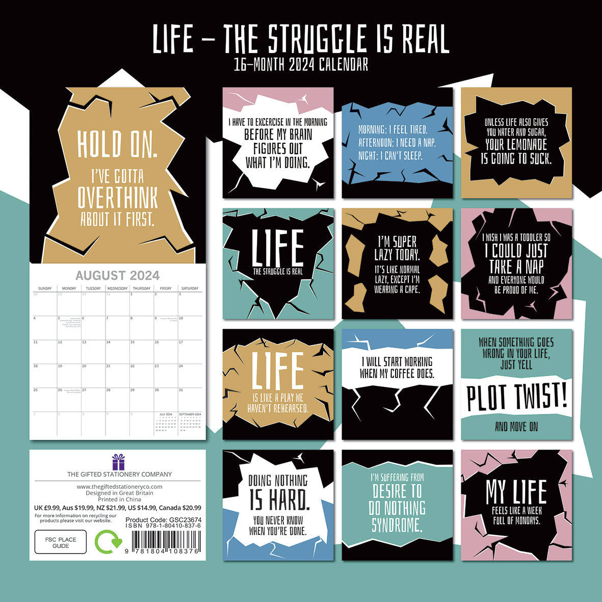It features 13 stunning pictures of Life - The Struggle is Real and large grids to write down all your important events, measuring 30 x 60 cm when opened.